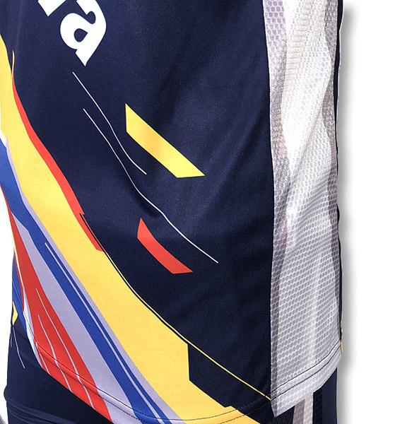 Race ... závodní verze z vysoce prodyšných a elastických materiálů. Výrazně odlišný dámský a pánský střih s precizním propracováním. 100% polyester. Ideální pro sprintové disciplíny a trénink v teplém počasí. Celopotisk je proveden sublimační technologií, která zaručuje světlostálost barev po celou životnost dresu. Možno použit fluo barvy. Dodáváme kompletní sortiment XXL-XS včetně standardních dětských velikostí. Grafika pro dres je dodána zákazníkem nebo vytvořena podle požadavku v našem grafickém oddělení.
