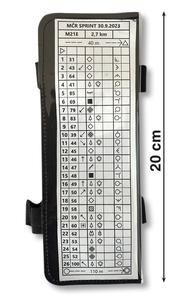 Popisník pro popisy v orientačním běhu. Velikost 20 cm. Fólie odolná mrazu i vlhkosti. Precizně nastavitelné uchycení přes záklopnou stavěcí sponu. U vyšších nákladů je možný vlastní jednoduchý klubový potisk.